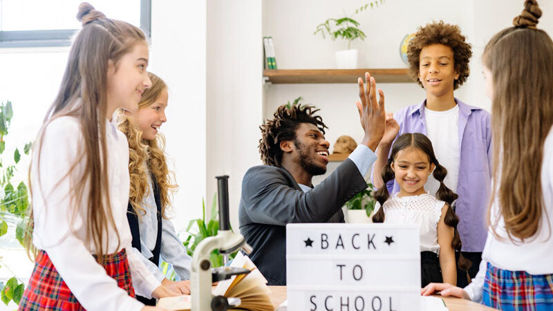 جميع الطلاب والمعلمين سعداء بالعودة إلى المدرسة